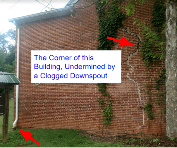 Look closely and you will see cracks at nearly all downspouts around our 20-30 year old homes and mold growing on the floor joists, heavier near the wettest walls.