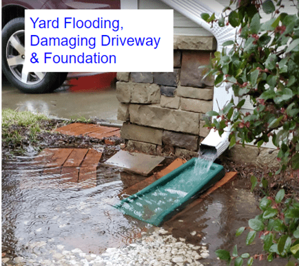 On Average, roughly 200 gallons per downspout, per inch of rain, dumps roof water down around the foundations.